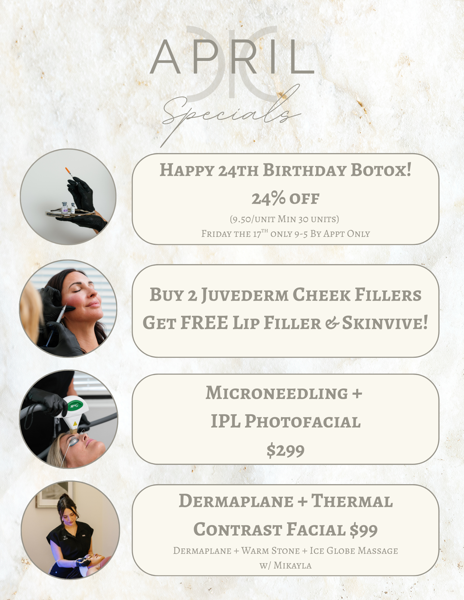 Follow along on Instagram and Facebook to be the first to know about our monthly specials. Based on regular price. Have a question? Get in touch!